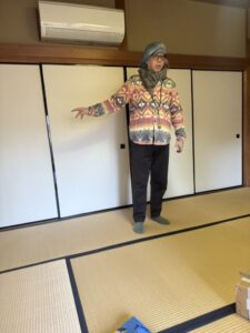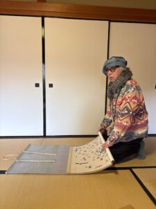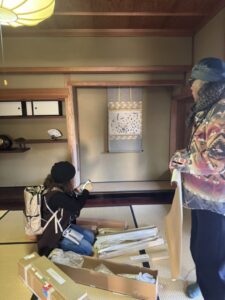 母屋は改造中で、離れの茶室を多くの人達が集う茶室サロンにする計画です。この日は茶室の床の間にパウルクレーの掛け軸をプレゼント