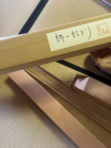 茶室は白無地の襖で囲まれており、そこに塩澤構想にて襖絵を描くこととなりました。塩澤にはクレーの掛け軸の名前にちなんだ詩が散りばめられたお部屋のイメージが降りて来た様子です。