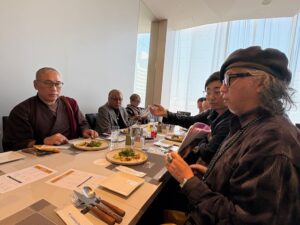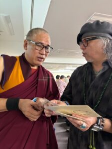He had already been informed about Shiozawa’s painting offerings for the Mahabodhi Temple in India, but on this day, we showed him photographs of past works and formally explained the activities to Rinpoche in person.