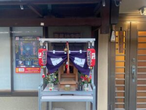 Then, on December 31st, we noticed neighbors gathered near our studio entrance. When we opened the door, we found a shrine for the statue had been built in the wall space our studio and next house. And the statue had returned there.