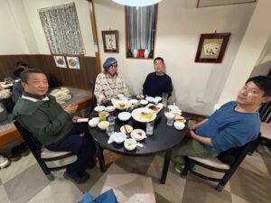 私達は新宮に戻り、今回車を出してくれた友人のヤスさんと、速玉大社にご同行いただく前岡氏、東京かみくらの大将の弟さんの寺地俊哉さんと夕食を共にしました。今後の奉納日に向けてのご協力体制を改めて皆さんと確認しあいました。ヤスさん、智哉さん、前岡さん、本当にありがとうございました!