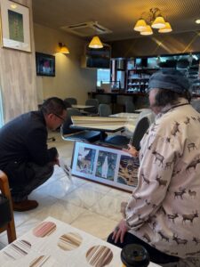 私達は、今回の奉納画に至る不思議なエピソード、過去の神仏画の同様の神秘現象なども交え、情報を盛りだくさんにお話しました。寺本氏は音楽、絵画、芸術、歴史、文学にも広い知識を持っておられるので、塩澤の話も尽きない。気が付くと意気投合で2時間も話し込んでしまいました。