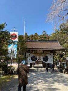 本宮大社では九鬼宮司様と6月7日の具体的な段取りについて打ち合わせした。ここでも熊野三山の西陣織をご説明。快く奉納を受け入れて下さる事となりました。