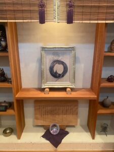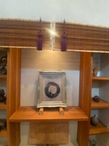 (3月20日フェイスブックより。) 本日は京都太秦にある鍼灸治療院の院長である安達様のお宅をお訪ねました。安達様は、自然治癒力を呼び覚まし体の癒しにつながる「らく庵」という音楽ホールを運営しています。そこには西陣織で仕上げられた作品「波龍円相図」が大切にお祀りされていました。魂を込めて描いた絵を、心を込めて織り上げ、そして大切に祀られる。この循環が活発に始まったような気がします。