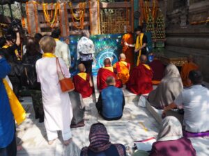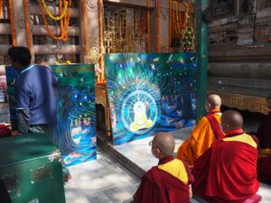 いよいよブッダガヤのマハーボデイ寺院に逆走シルクロード第3弾作品「釈迦悟りの杜」が運ばれました。
